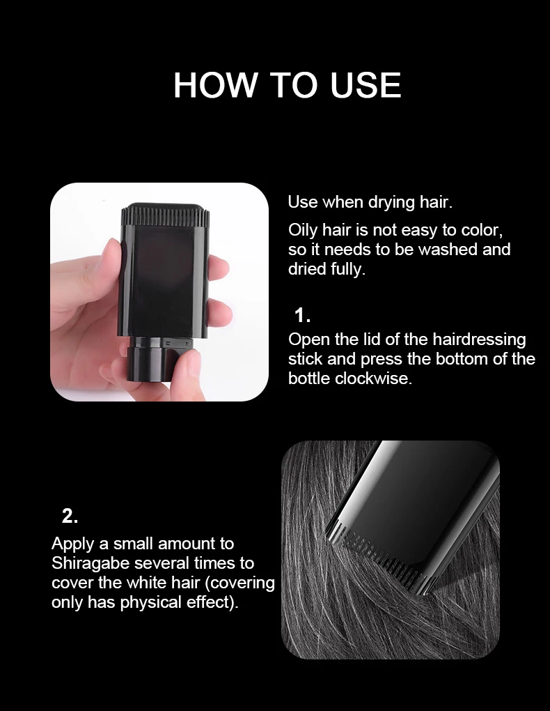 Start with clean, dry hair for the best results. Twist the base of the stick and apply directly to gray roots. Blend gently for smooth, natural-looking coverage.